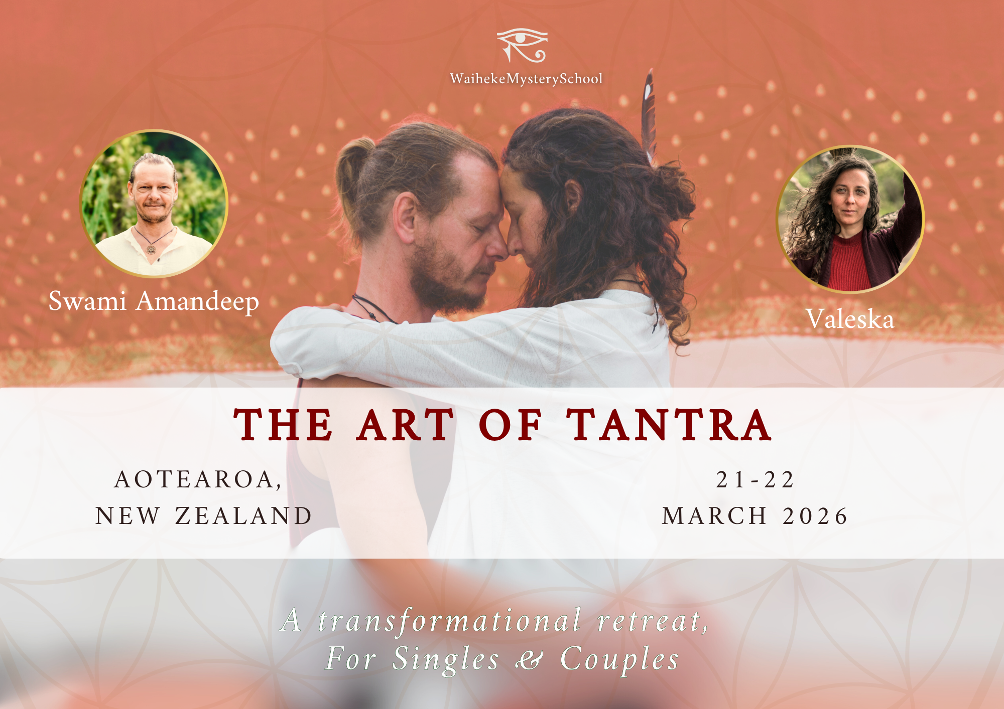Upcoming Retreats 2026 March 2026 🗓 21 - 22 March 2026 🏝 New Zealand ✨ The Art of Tantra ✨ 🗓 26 - 29 March 2026 🏝 Ubud, Bali ✨ Shivoham - The Pillar of Light ✨ April 2026 🗓 3 - 5 April 2026 🏝 Ubud, Bali ✨ Alchemy of Tantra ~ From Initiation to Mastery ✨ 🗓 22 - 26 April 2026 🏝 Rishikesh, India ✨ Shivoham - The Pillar of Light ✨ 🗓 29 April - 3 May 2026 🏝 Rishikesh, India ✨ Shivoham - Diamond in the Lotus ✨ May 2026 🗓 9 - 10 May 2026 🏝 Casablanca, Morocco ✨ The Art of Tantra ✨ 🗓 14 - 17 May 2026 🏝 Czechia ✨ Manipura Chakra ✨ 🗓 23 - 25 May 2026 🏝 Sion, Switzerland ✨ The Art of Tantra ✨ 🗓 29 -31 May 2026 🏝 Sofia, Bulgaria ✨ Tantra - The Sacred Union ✨ June 2026 🗓 11 - 14 June 2026 🏝 Czechia ✨ Anahata Chakra ✨ 🗓 19 -21 June 2026 🏝 Valencia, Spain ✨ Tantra Mastery Immersion ✨ September 2026 🗓 1 -14 September 2026 🏝 Nepal & Tibet ✨ Sacred Mount Kailash Tour & Kora Pilgrimage ✨ 🗓 19 - 26 September 2026 🏝 Dharamshala, India ✨ Shivoham - Diamond in the Lotus ✨ 🗓 30 September - 4 October 2026 🏝 Dharamshala, India ✨ Sacred Alchemy ~ The Art of Tantra ✨ October 2026 🗓 26 -31 October 2026 🏝 Bali, Indonesia ✨ One Heart Retreat ✨ 🗓 2 - 29 November 2026 🏝 Bali, Indonesia ✨ Tantra & Yoga Teacher Training ✨ Retreat Details 2026 The Art of Tantra ~ New ZealandTeachers: Swami Amandeep and Valeska 🗓 21 - 22 March 2026🏝 New Zealand (Venue to be confirmed) LEARN MORE Alchemy of Tantra ~ From Initiation to MasteryTeachers: Swami Amandeep 🗓 10 - 12 April 2026🏝 Ubud, Bali LEARN MORE Shivoham - The Pillar of LightTeachers: Amandeep and Dev 🗓 15 - 19 April 2026🏝 Ubud, Bali LEARN MORE Shivoham - The Pillar of LightTeachers: Amandeep and Dev 🗓 22 - 26 April 2026🏝 Rishikesh, India LEARN MORE Shivoham - Diamond in the LotusTeachers: Amandeep and Dev 🗓 29 April - 3 May 2026🏝 Rishikesh, India LERAN MORE The Art of TantraTeachers: Swami Amandeep and Valeska 🗓 9 - 10 May 2026🏝 Casablanca, Morocco LEARN MORE Manipura Chakra Teachers: Swami Amandeep and Anurasa 🗓 14 - 17 May 2026🏝 Czechia LEARN MORE The Art of TantraTeachers: Swami Amandeep and Valeska 🗓 23 - 25 May 2026🏝 Sion, Switzerland COMING SOON Tantra - The Sacred UnionTeachers: Swami Amandeep and Padmini 🗓 29 -31 May 2026🏝 Sofia, Bulgaria COMING SOON Anahata Chakra Teachers: Swami Amandeep and Anurasa 🗓 11 - 14 June 2026🏝 Czechia LEARN MORE Tantra Mastery ImmersionTeachers: Swami Amandeep and Valeska 🗓 19 -21 June 2026🏝 Valencia, Spain LEARN MORE Sacred Mount Kailash Tour & Kora PilgrimageTeachers: Swami Amandeep and Ma Ananda Sarita 🗓 1 -14 September 2026🏝 Nepal & Tibet LEARN MORE Shivoham - Diamond in the LotusTeachers: Amandeep and Dev 🗓 19 - 26 September 2026🏝 Dharamshala, India COMING SOON Sacred Alchemy ~ The Art of TantraTeachers: Amandeep and Valeska 🗓 30 September - 4 October 2026🏝 Dharamshala, India LEARN MORE One Heart RetreatTeachers: Swami Amandeep and Valeska 🗓 26 -31 October 2026🏝 Bali, Indonesia LEARN MORE Tantra & Yoga Teacher TrainingTeachers: Swami Amandeep and Marali 🗓 2 - 29 November 2026🏝 Bali COMING SOON Calendar of Events